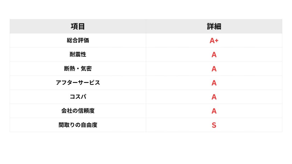 坪単価は大手ハウスメーカーの同性能帯より割安で、コストパフォーマンスを重視する方に適しています。契約前にモデルハウスの体験、標準仕様とオプションの確認、保証内容の把握を済ませておけば、満足度の高い家づくりにつながります。